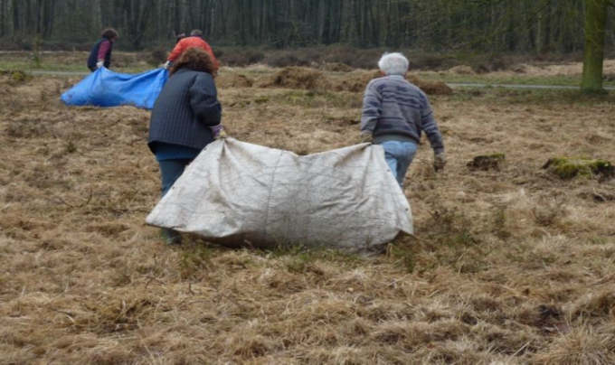 Auf städtischen und NABU eigenen Flächen werden u.a. kleine Bäumchen und Brombeeren mit einem Spaten ausgegraben, um das Überwachsen der örtlichen Vegetation zu verhindern. Wenn es sinnvoll ist, größere Bäume zu fällen, wird das Holz an geeigneten Stellen im Gelände gelagert.