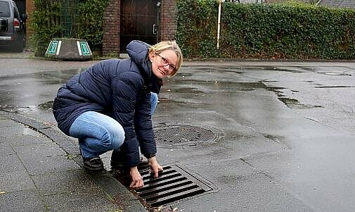 FOTO: Thomas Lammertz / rp-online.de Susanne Effertz kontrolliert regelmäßig die Senken. Bisher wurden sie weder gereinigt noch die Fangkörbe erneuert.