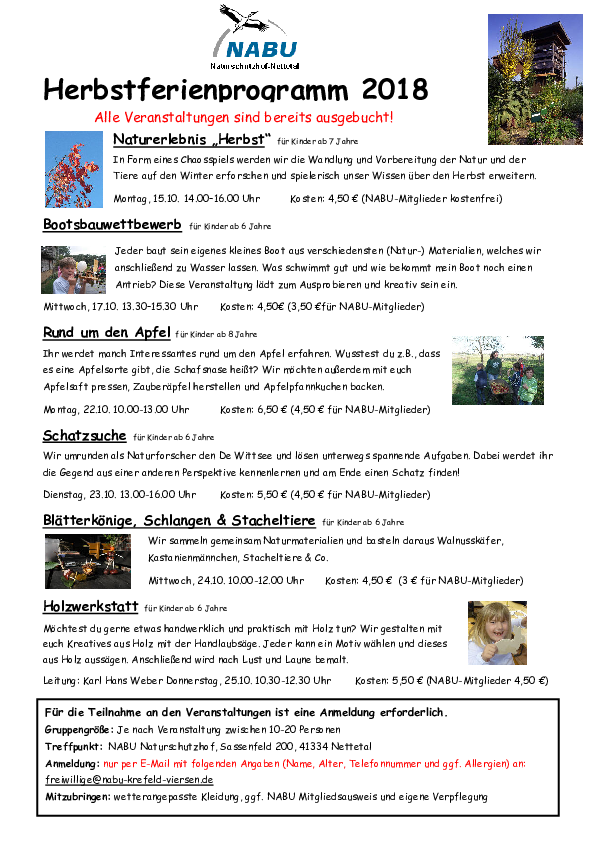 Hier finden Sie das Herbstferienprogramm 2018 vom NABU-Naturschutzhof