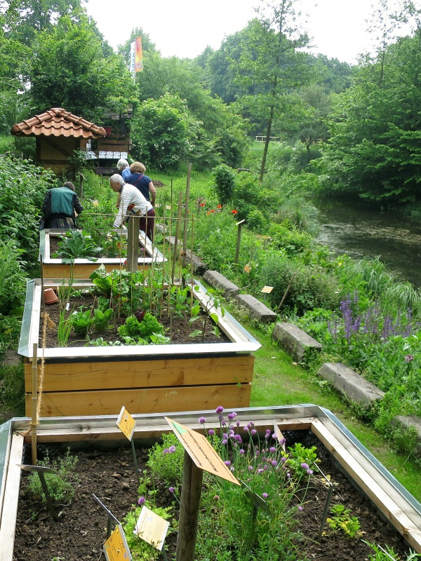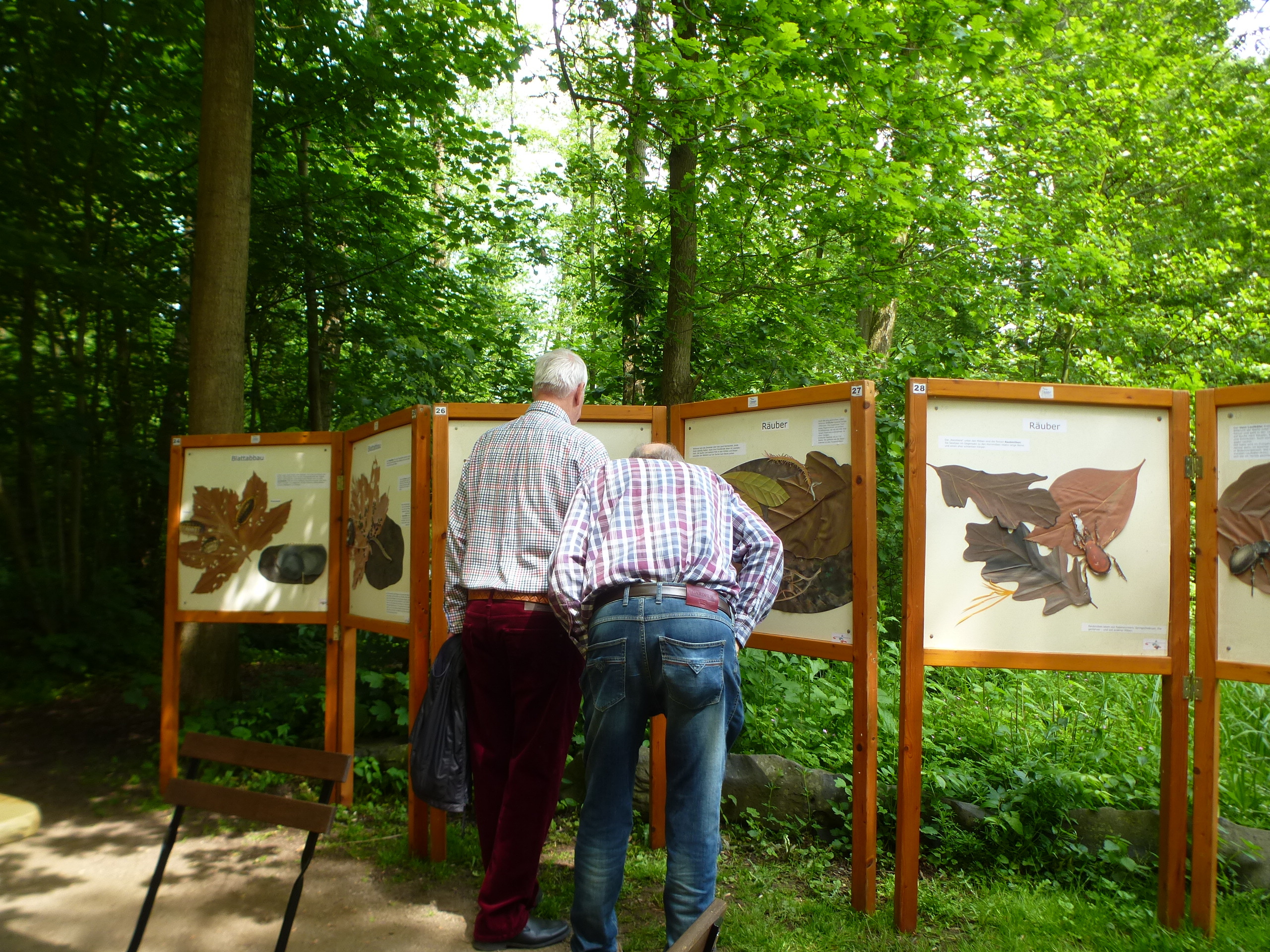 Das Wildbienenhaus mit seinen vielen Nistmöglichkeiten war ein Anziehungspunkt für die Besucher. Heike Monsieur veranstalte jede Stunde eine Führung durch den Naturerlebnisgarten. Hierbei erklärte Sie auch die drei neu angelegten Hochbete mit ihren Pflanzen, die Sie mit ihrem Sohn im Winterhalbjahr gebaut hatte. Mit Hinweisschildern, ob Wildbienen- und Insektenfreundlich wurden verschiedene Pflanzen gekennzeichnet. Weiterhin gab es eine Ausstellung mit 20 umfassenden Tafeln über das Leben mit dem Titel " Viel los im Boden " zu sehen. Jürgen Gehlen hielt einen Vortrag über Insekten im naturgarten Garten in der Umweltstation.