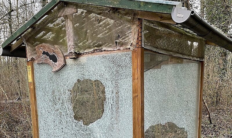 Ameisen-Formicarium im Schlosspark Neersen von Unbekannten zerstört